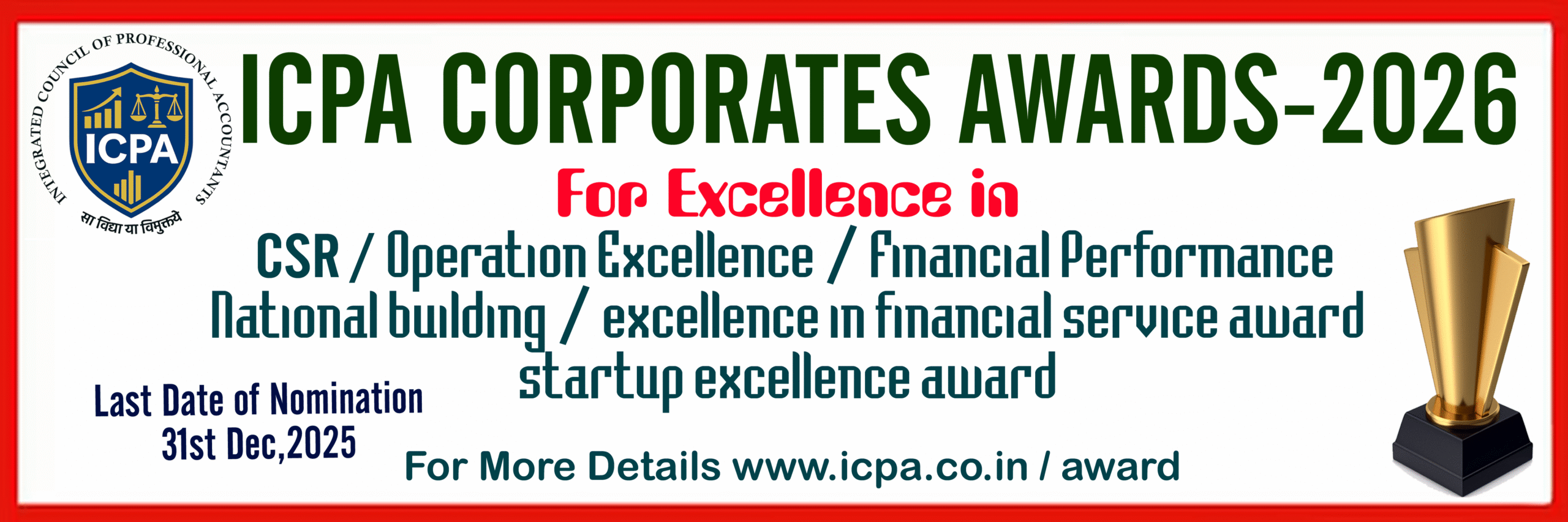 Integrated Council of Professional Accountants (ICPA), we believe that recognizing excellence is essential to inspiring continued growth, fostering innovation, and celebrating meaningful contributions within the finance profession.
