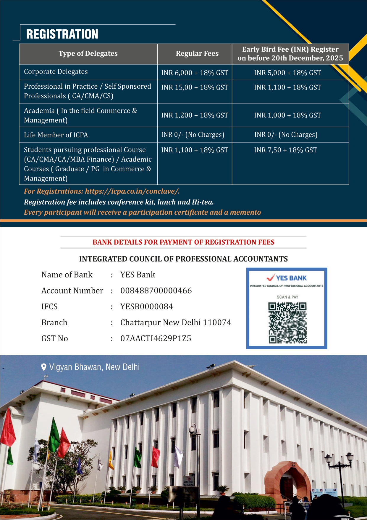 Corporate Delegates INR 6,000 + 18% GST INR 5,000 + 18% GST